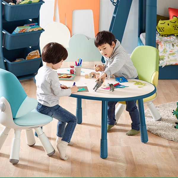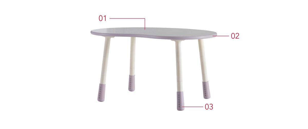 圓弧設計並以減緩衝擊力的防護膠條邊框收邊,能減低不慎碰撞的衝擊,完全體現居家安全的概念;可依據孩童成長高度,利用四個桌腳的旋轉式調節器調和延伸桌腳,最高到72cm高的三段式書桌(1200多用途枱),培養孩子的正確坐姿,是長久實用的高實用性設計;桌面表面有環保抗污塗層,方便清潔,小朋友鉛筆蠟筆畫到只要用濕布擦拭即可輕鬆處理;防護膠條上有凹槽,可放置常用筆隨手取用;豐富的色彩可以激發孩童的創造力,讓房間布置更為活潑生動。